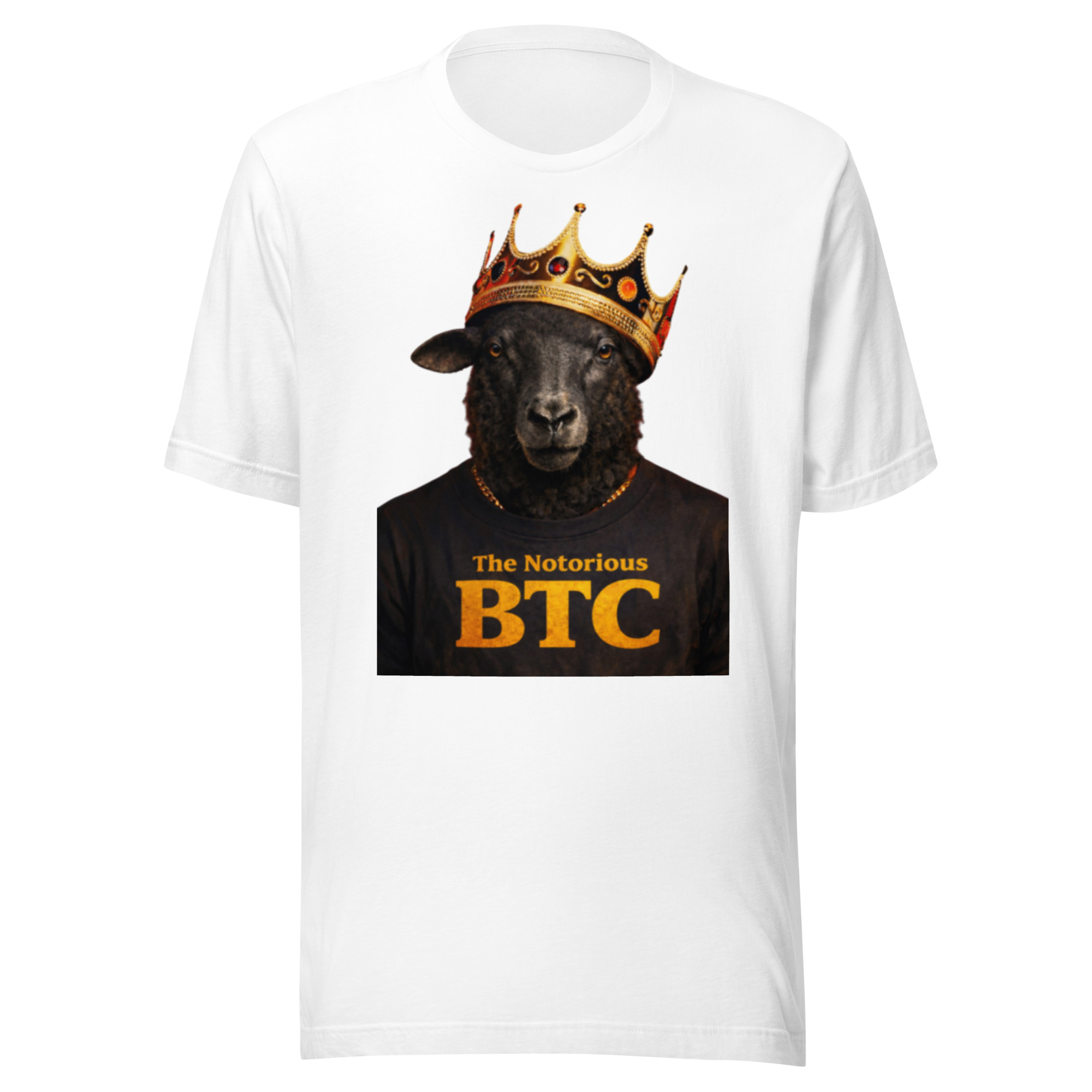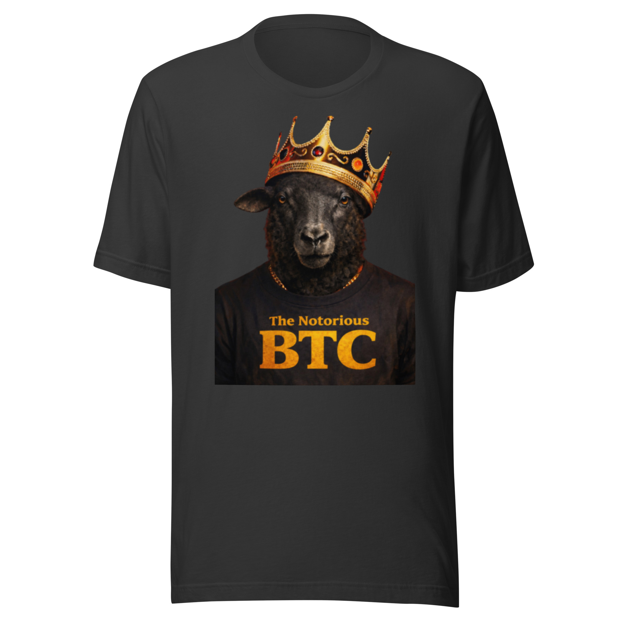 The Notorious BTC Tee by Bitcoin Black Sheep, a Notorious B.I.G. inspired design blending iconic hip hop style with bold Bitcoin energy.